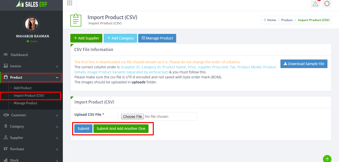 - To import product just go to > Product > Import Product(CVS). Now you can import any product or file(must be CVS formate).