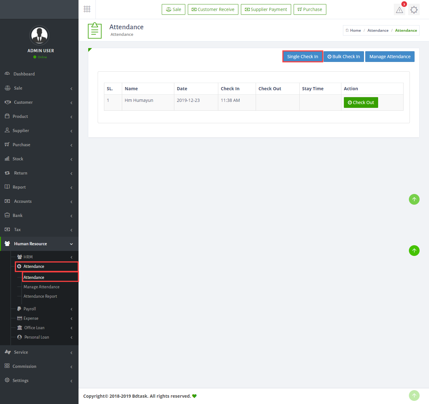 - You can also take the Attendance of your Employee to get the attendance just got to Human Resources > Attendance > Attendance then Single Check In