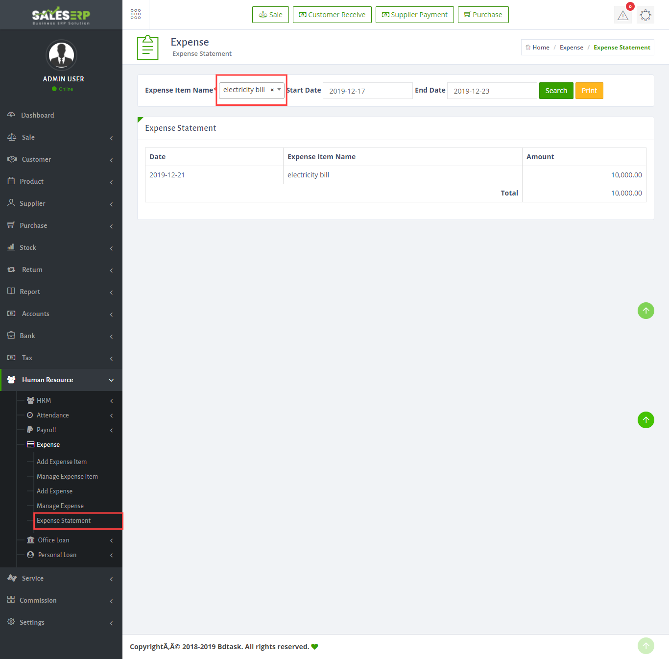 - You can also make the expense statement to get it just go to Human Resources > Expense > Expense statement then select expense name and date, hit search