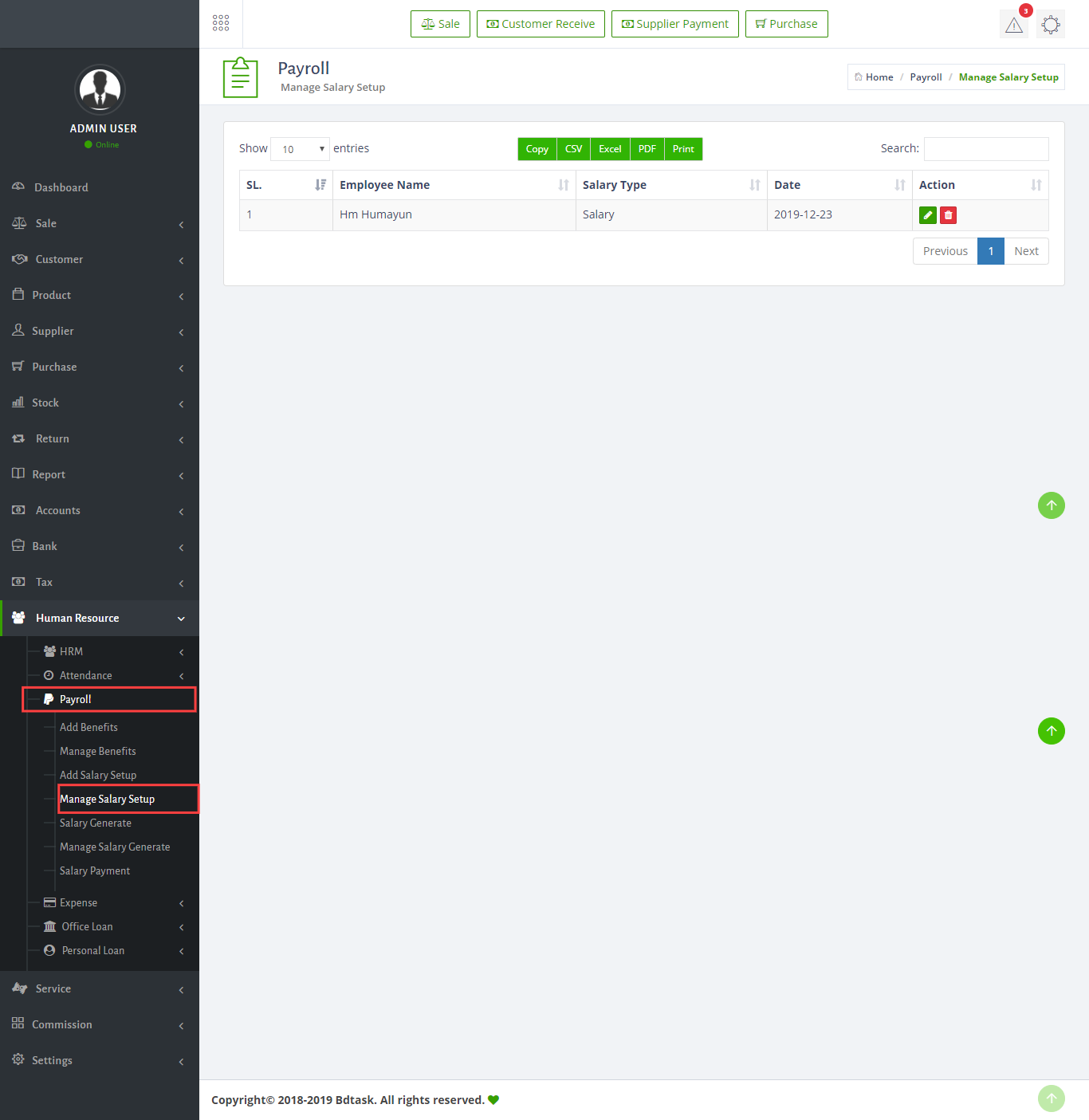 - To manage the salary setup just go to Human Resources > Payroll > Manage Salary Setup