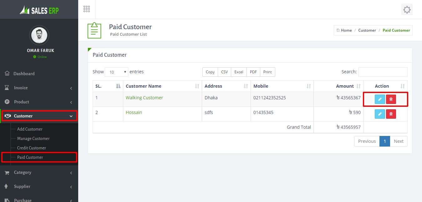 - To manage customer just go to Customer > Manage Customer. you can edit or delete any customer from here.