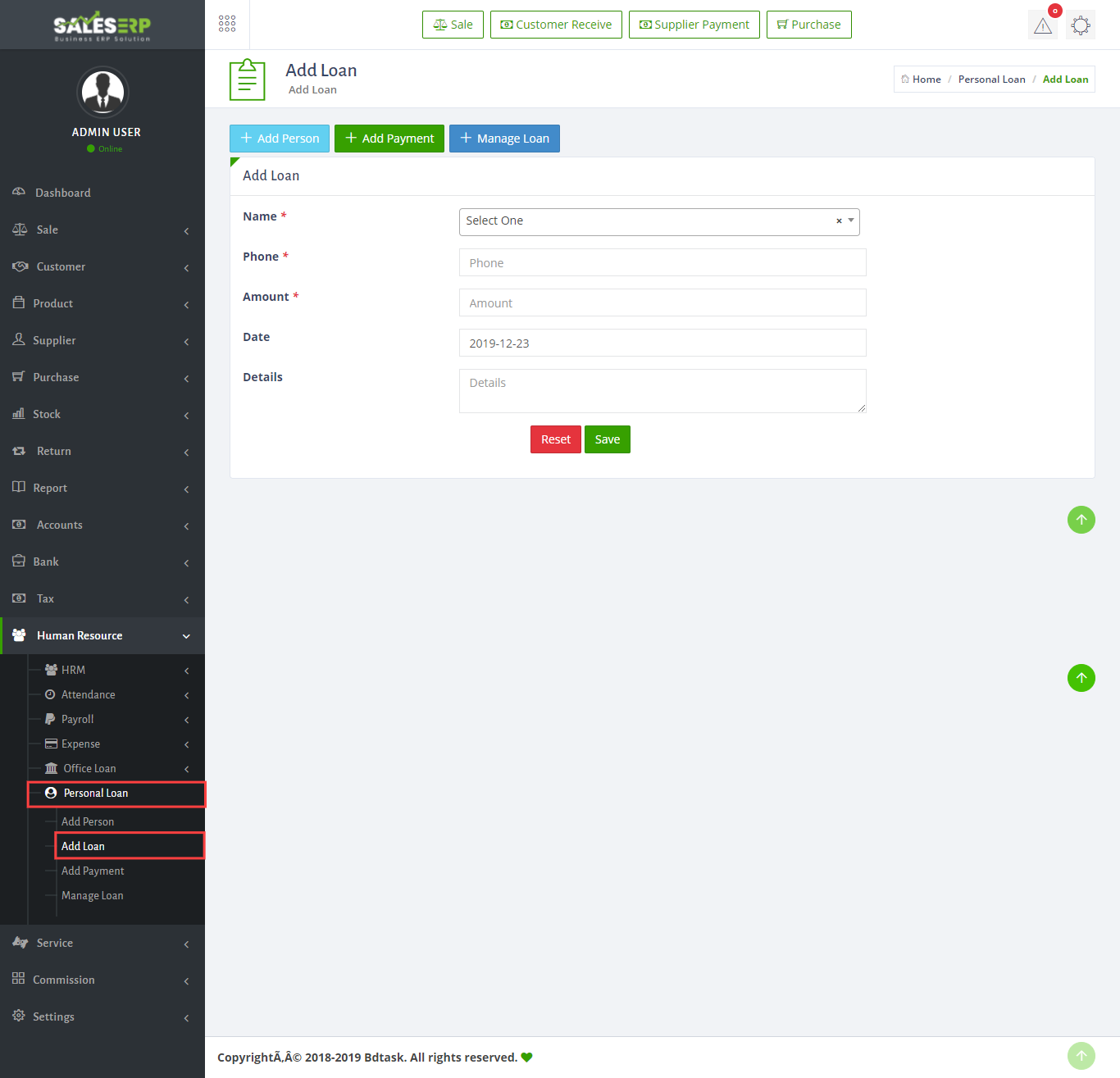 - Sales ERP has a fully illustrated Human Resources Management system. To manage your employees just go to Human Resources > HRM > Manage Employee