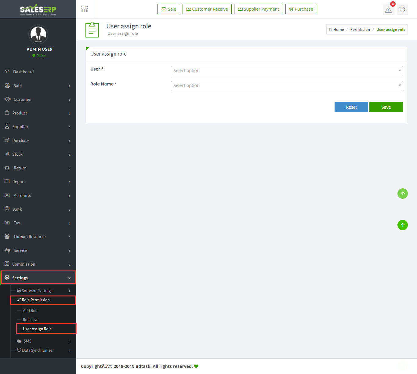 - Role Permission is a new feature of Sales ERP. You can customize the role for different user. To make a role map just go to Human Resources > Role Permission > Add Role. Now give a name of this role and select the options you want to add with this role then hit save button