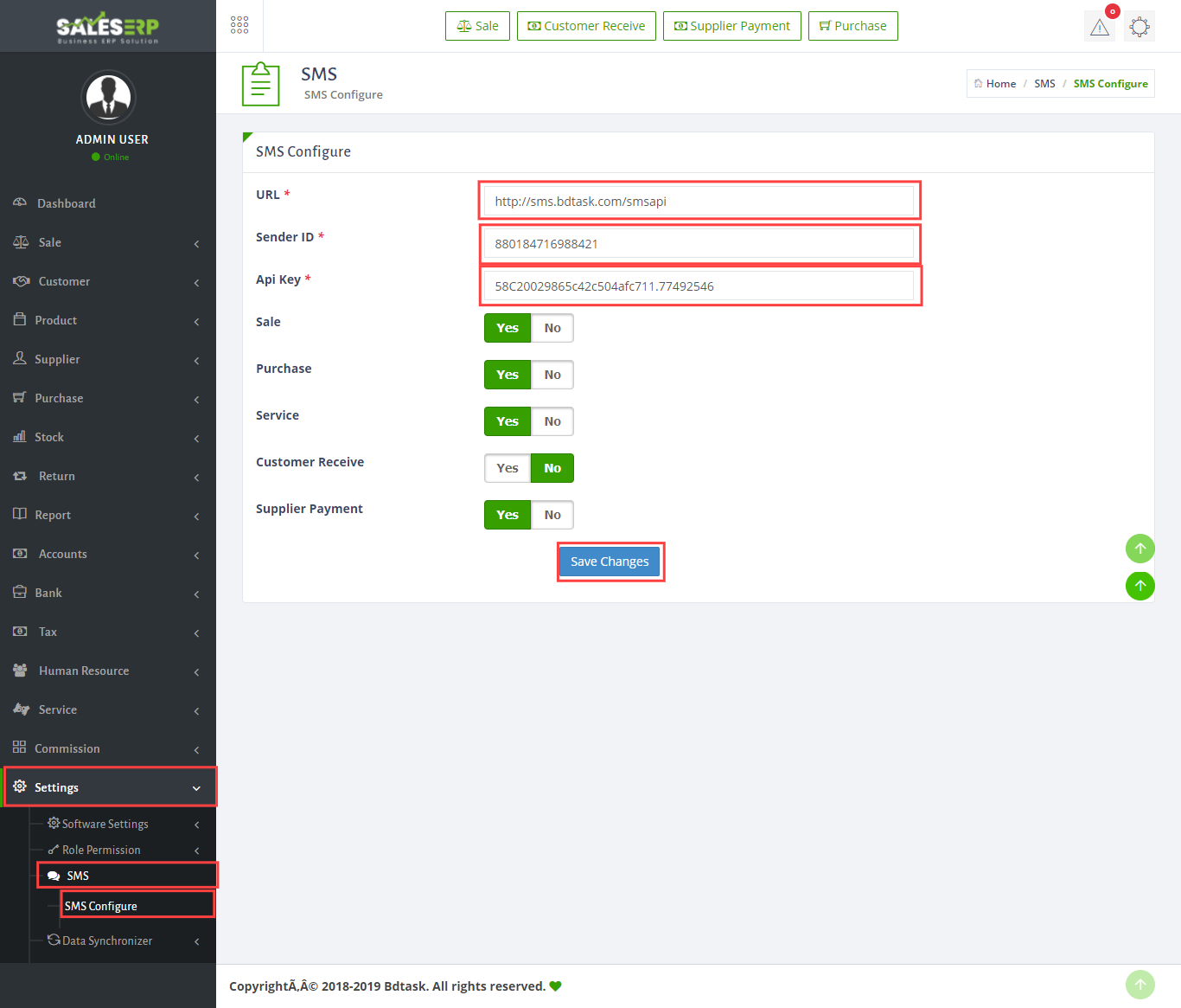 - To get a sms service you have to configure the SMS setting. To configure the setting,just go to Settings > SMS > SMS Configure. Set all the neceessary information and hit save change